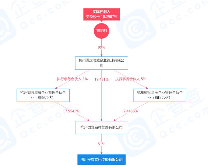 企查查数据显示,子柒文化由微念和李佳佳(李子柒)分别持股51%、49%。但在微念的股东名单中,刘同明持股19.451%,李子柒并未持股。0持股微念,成为此次事件的导火索。两家公司的分工十分明确:子柒文化负责“李子柒”内容品牌的维护和运作,微念则是“李子柒”作为一个消费品牌实际的运营方——李子柒天猫旗舰店的运营主体,显示是微念。