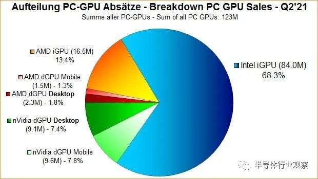 英特尔核芯显卡市占率达到68.3%(图源:JPR)