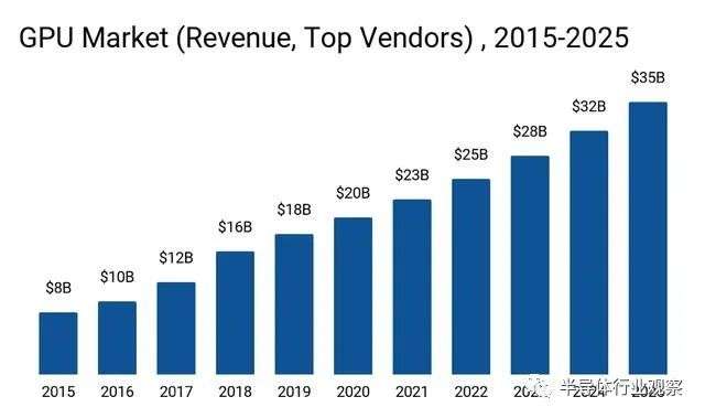 据数据统计,2020年全球GPU行业规模为200亿美元,预计2021年将增长15%。从2015年到2025年,GPU行业预计平均每年增长13%,将从80亿美元扩展到350亿美元的规模。