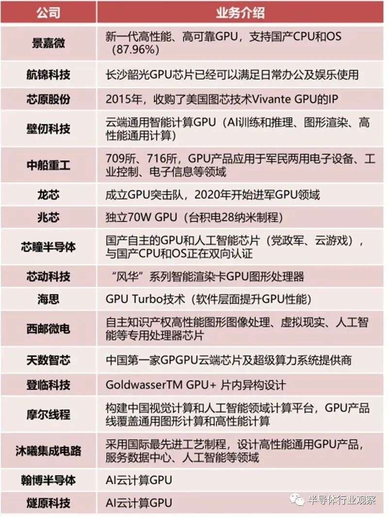 国内GPU厂商不完全统计(如有遗漏,欢迎补充)