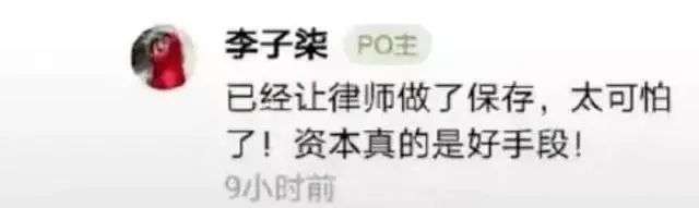 几天后,李子柒在“绿洲”中的发言则更让人感到莫名其妙,其发文表示“半夜被恶心到了,这么快就按耐不住了么”,并在评论区回复 “已经让律师做了保存,太可怕了!资本真的是好手段!”,但这句回复很快就被删掉。