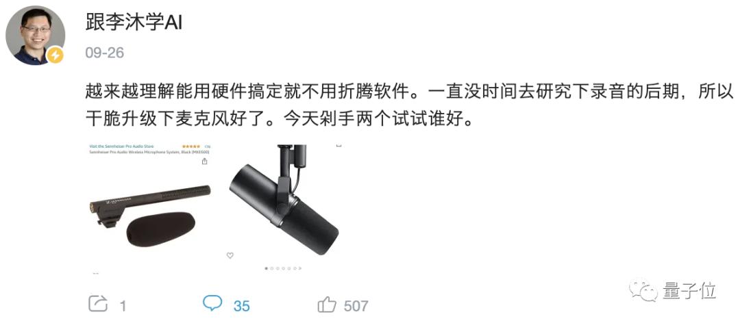 他认为长视频能让大家看下去音质是非常重要的。为此他特意剁手买了两个300多美元的专业麦克风,录试音视频让粉丝来选哪个效果最好。