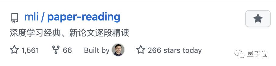 李沐给论文精读系列开的GitHub仓库也在不到一周时间狂揽超过1500星,还上了热榜。