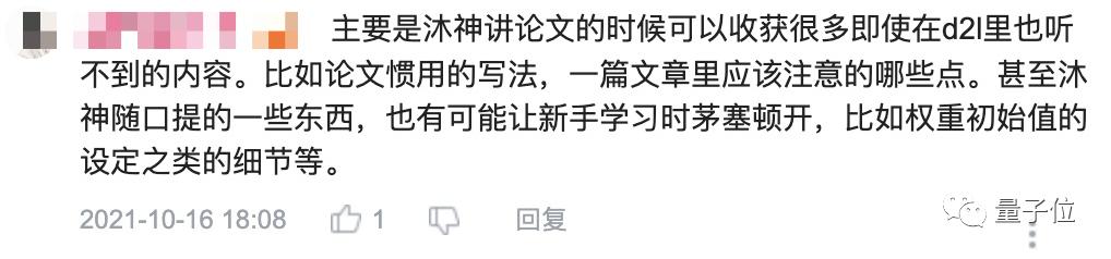 沐神看到后不仅给出了自己的看法,还怕粉丝看不懂,后续又详细补充了一条回复。