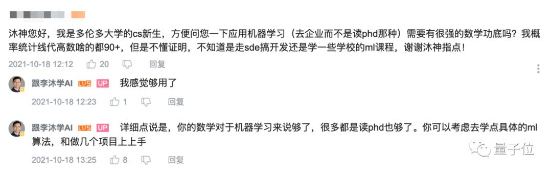 比发朋友圈更常见的,是沐神在评论区为为粉丝们答疑解惑。