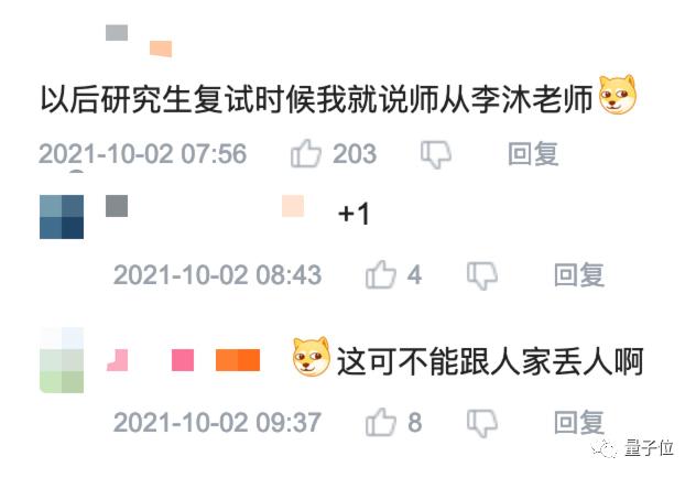 有网友就表示,以后自己研究生复试时都要说师从李沐老师(doge)。