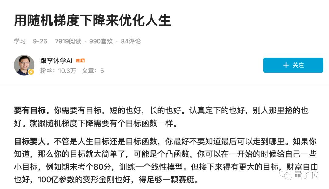 而且大神对写文这事儿似乎很感兴趣,前不久还在B站发表了《用随机梯度下降来优化人生》一文。