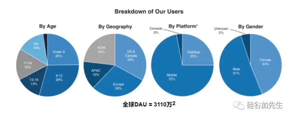 A. 截至2020年9月,Roblox用户日活3106万,54%用户小于12岁,还有13%年龄在13-16岁,即67%的用户都在16岁以下。