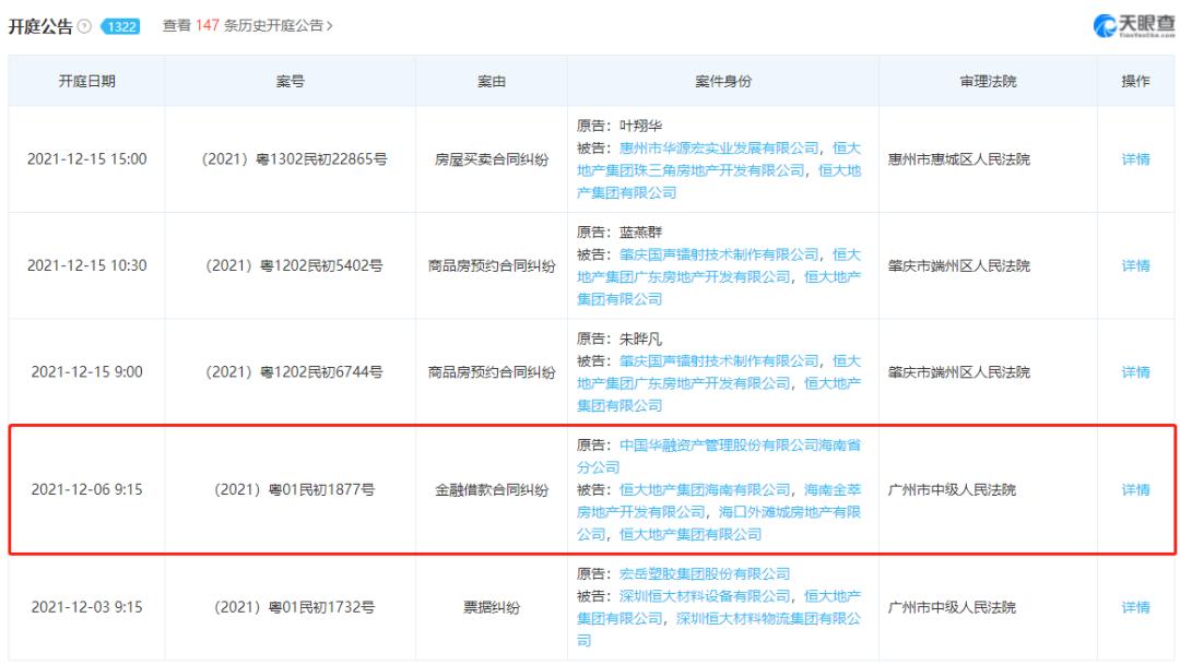 再加上前不久发布盈利警告的中国华融集团,预计2020年的净亏损数字高达1029亿元,以处理不良资产为主要业务的华融忽然“暴雷”,直接导致了市场避险情绪急剧上升。通过天眼查的司法数据,可以看到恒大集团与华融有过深度的融资合作,二者之间也存在着金融借款的合同纠纷,为了避免风险转移,恒大很难从其他融资机构获得帮助。
