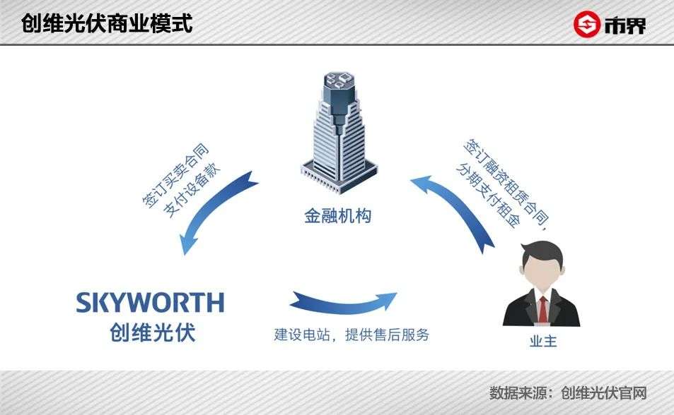 创维并不涉及光伏设备制造,而主要采取光伏设备融资租赁模式,由业主与创维光伏合作的金融公司签署融资租赁协议。租赁期内用户分期向金融公司支付租金,期满后,光伏电站归属业主所有。