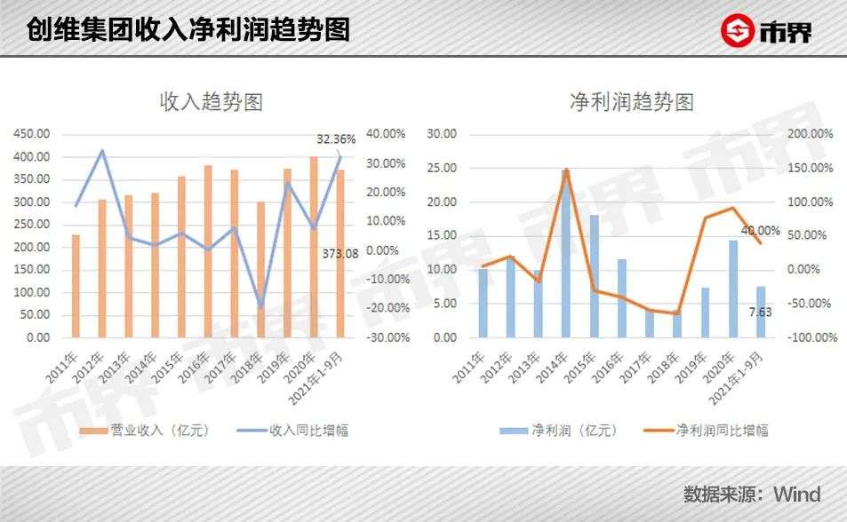 最新三季报显示,创维集团营业收入和净利润分别为373.08亿元和7.63亿元,同比分别增长32.36%和40%,均属于近五年来的较高水平。