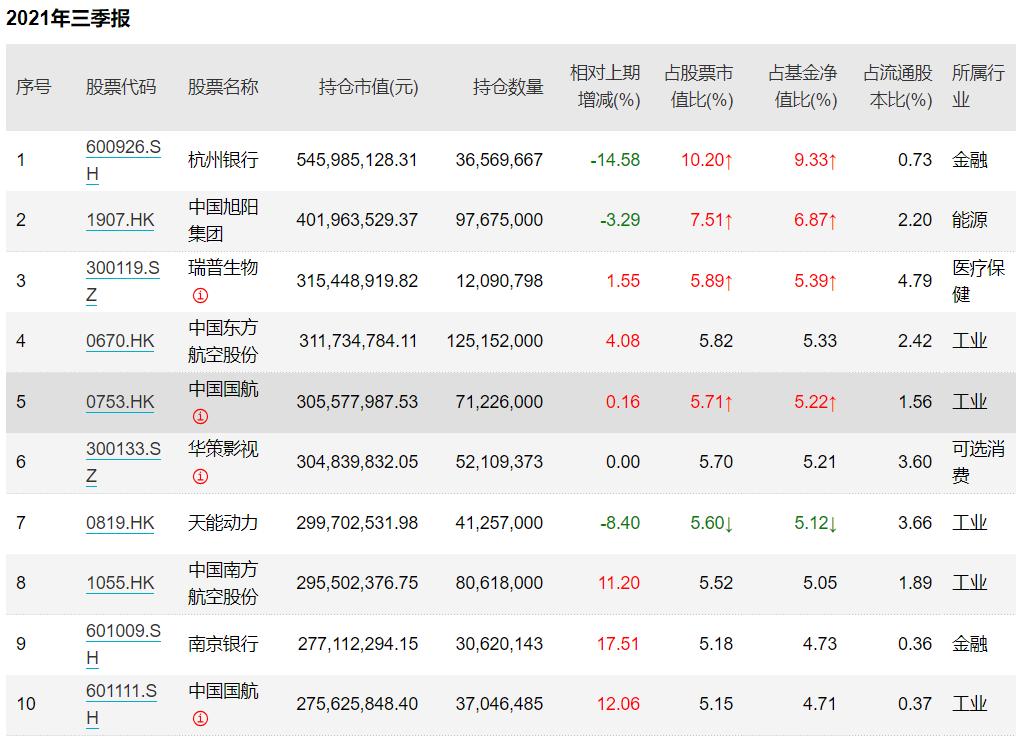 从其代表作之一,广发价值领先的三季报来看,其持仓基本集中在银行、航空等领域,兼有个别医药、影视公司。(见下图)