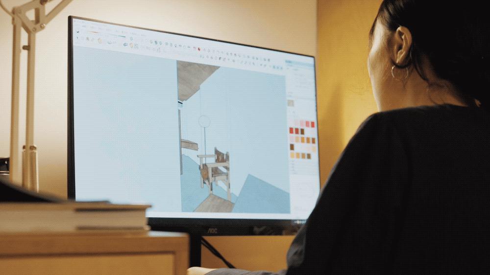 办公区的电脑挨着放,我和付老师既是夫妻也是工作伙伴,我们平时都一起讨论方案,居家办公是我们生活中的一大部分。