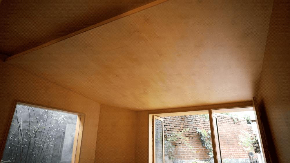 老房子主要有潮湿、漏水、管线老旧、采光不好、格局分配不合理等问题,我们做了全屋防水,加上我跟付老师希望房子可以是温暖的感觉,所以用大量的木制家具、窗框、天花板等材料,要让房子尽量通风保持干燥。