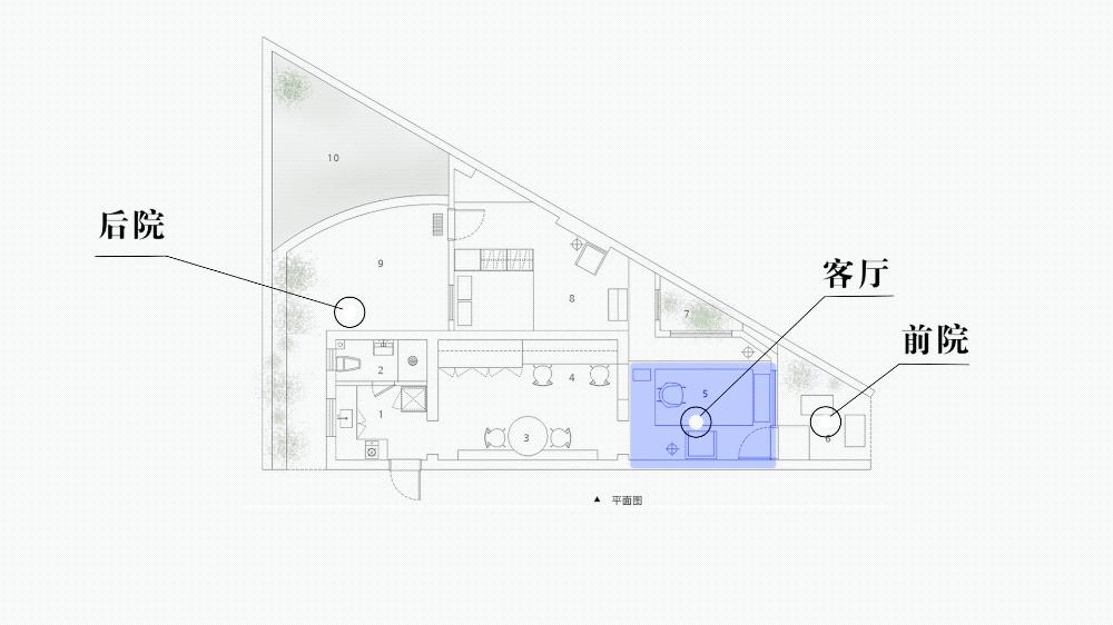 不规则的46平米室内空间带前后院,