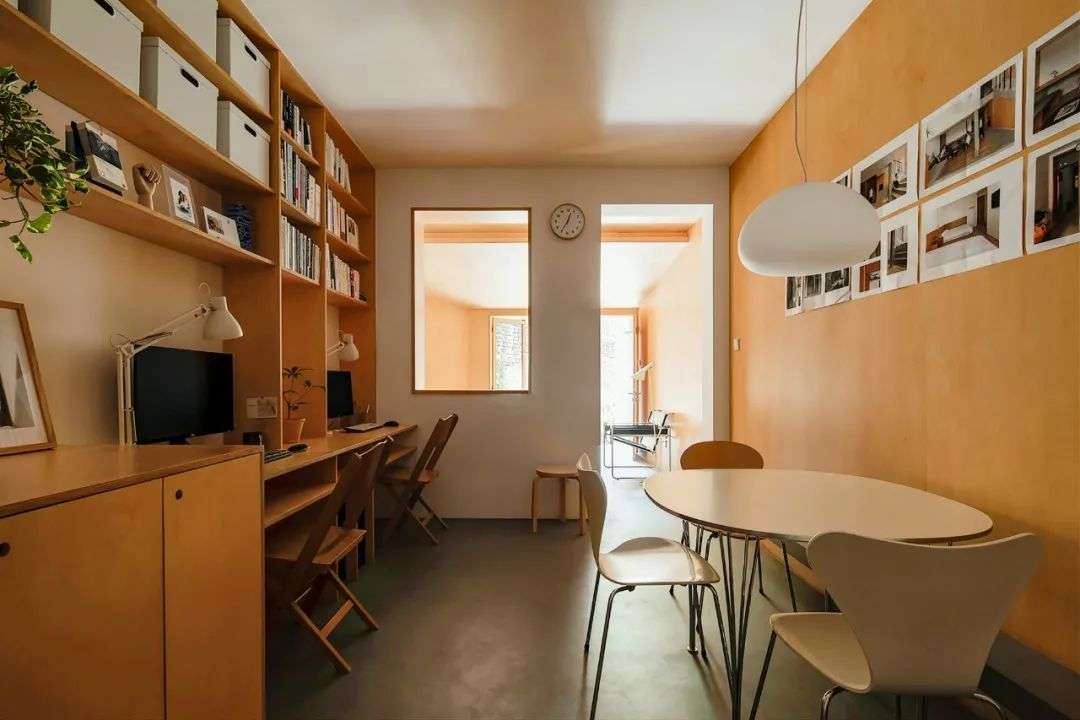 因为法规的关系,老房子外观和内部结构是不能更动的,所以我们把非承重的门窗开口做调整。“16号住宅”朝南,采光不是很充足,一般只有上午的阳光照得进来,我们把南院客厅的窗子打开、三角区的天井作为辅助采光,家里尽量减少空间隔断,让视觉得到延伸,整体就会开阔许多。