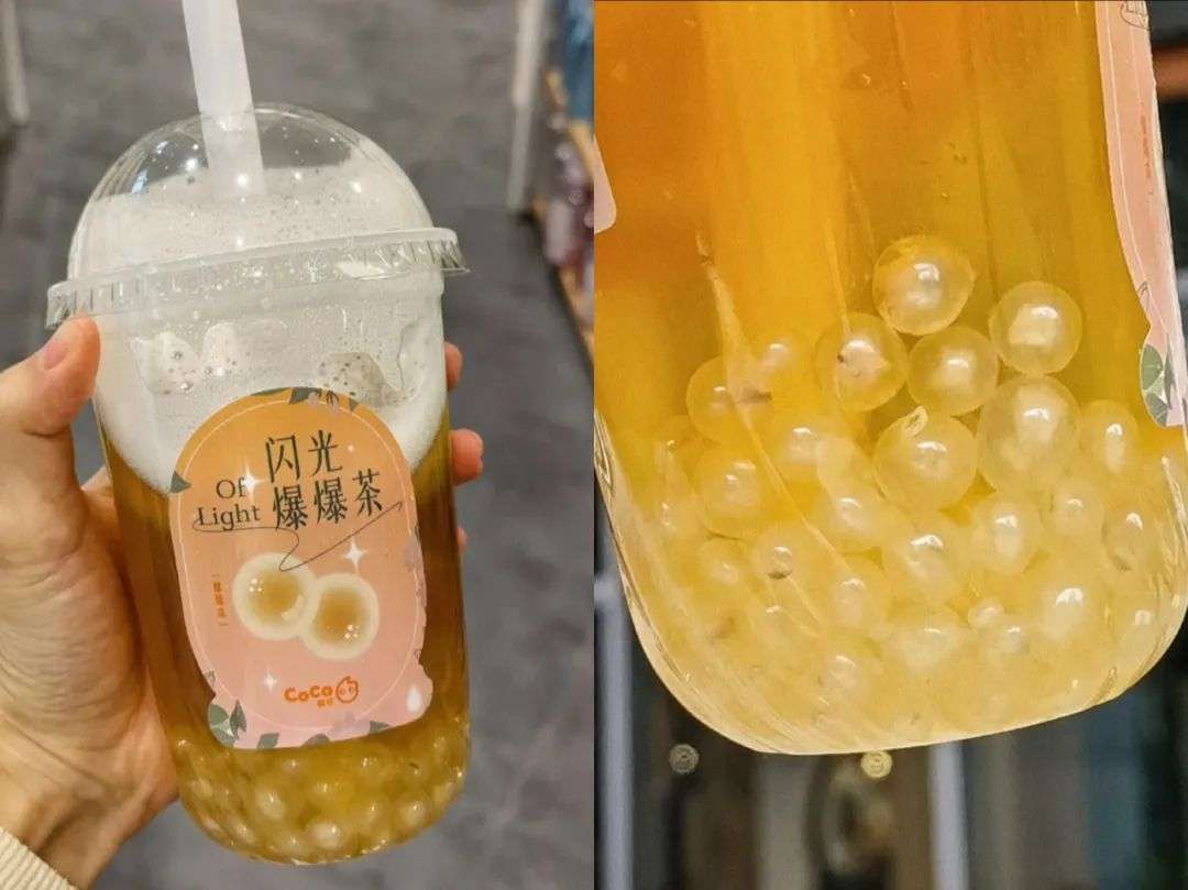 比如:CoCo都可上新的闪光爆爆茶系列,是将茶与马蹄爆爆珠做结合。和其他爆爆珠不同,这款马蹄爆爆珠在阳光下看起来光泽感十足,颇像珍珠,爆爆珠的高颜值在社交平台上引来不少打卡。