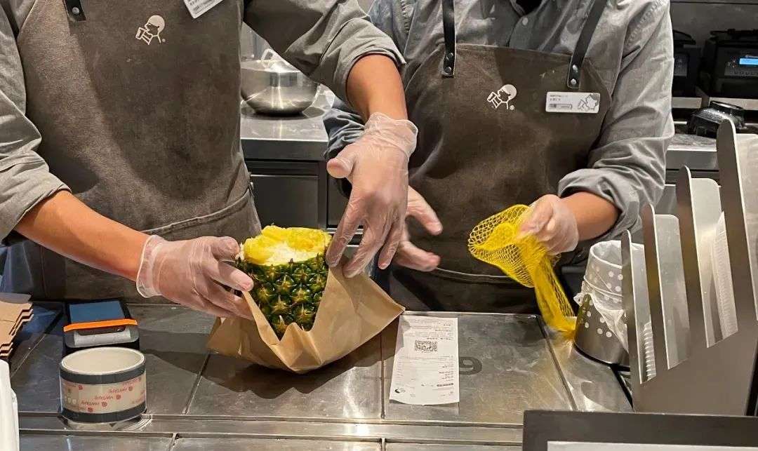 3. 整颗菠萝直接卖,水果茶的新造型