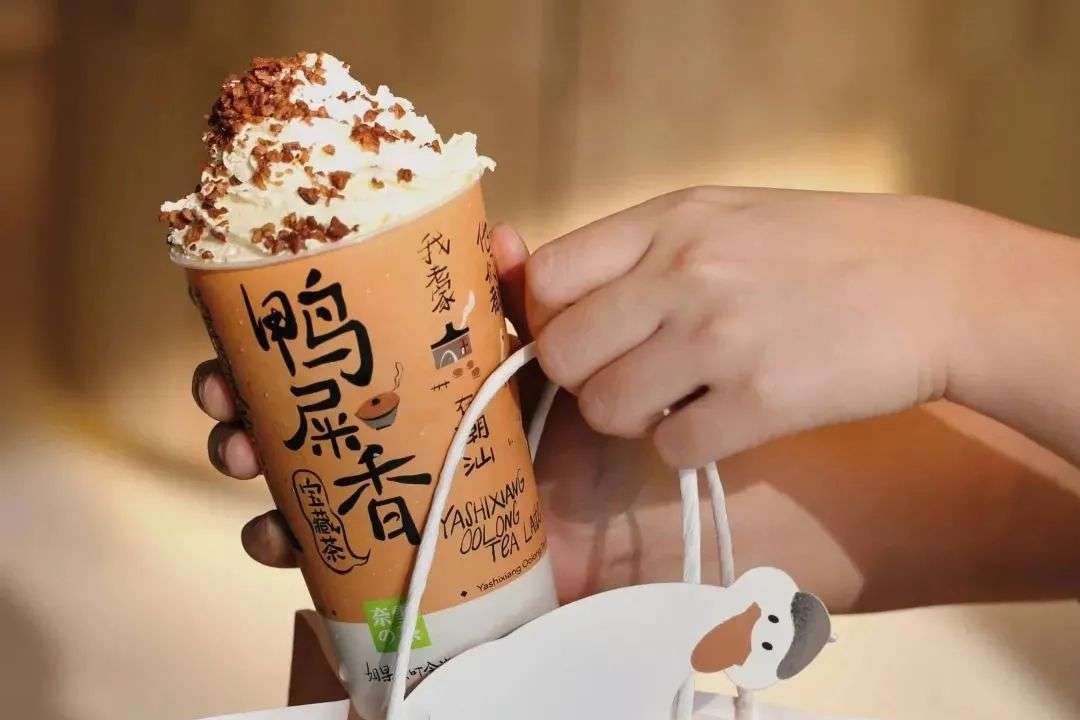 作为柠檬茶的经典搭配,鸭屎香茶冬季也在被推出。奈雪的茶上新鸭屎香宝藏茶,冷热饮均可做,与牛乳和奶油顶、坚果碎混合,基础的配方更能凸显茶底香气。