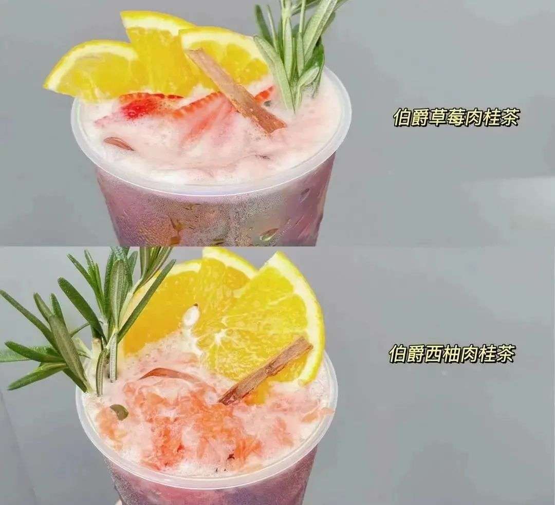 书亦烧仙草把这两款香料与伯爵红茶相结合,搭配水果,玩了一种“香料茶”新创意,推出伯爵草莓肉桂茶和伯爵西柚肉桂茶。