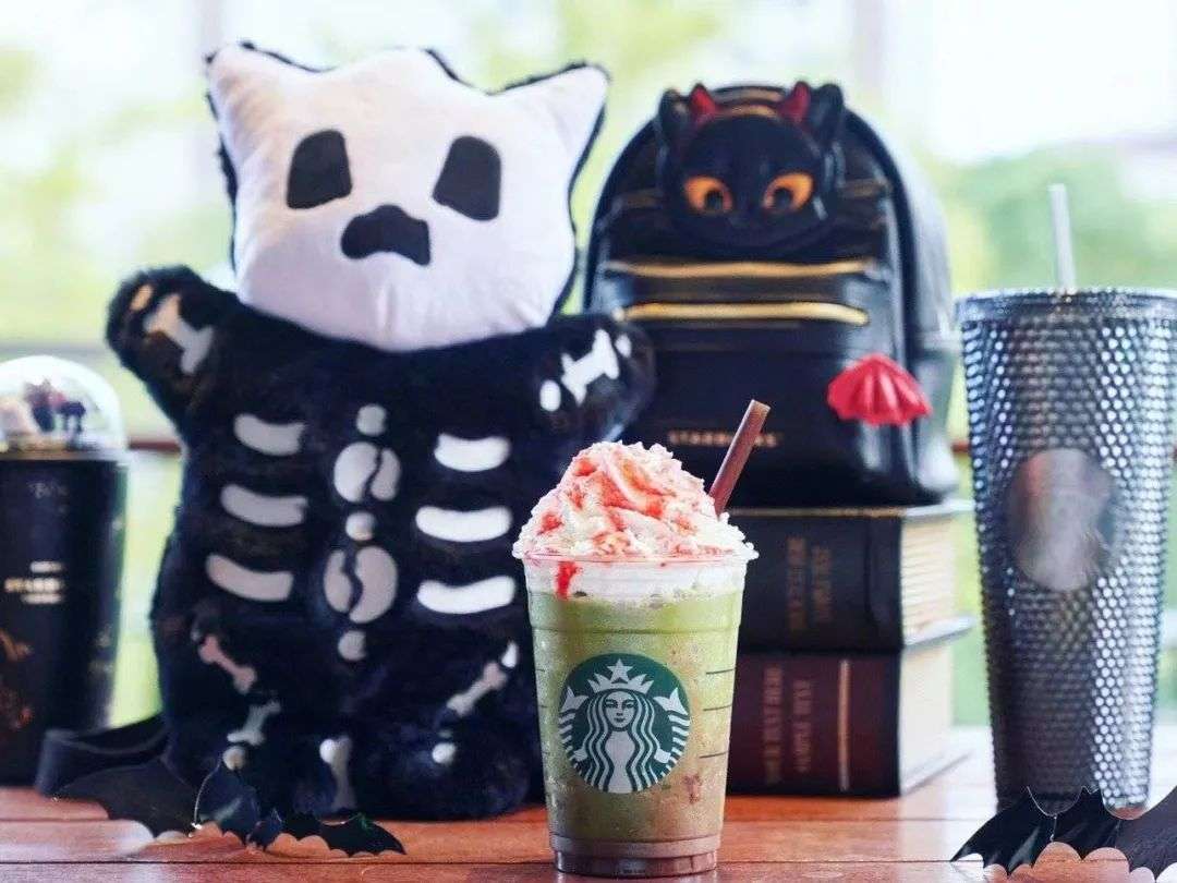 星巴克上新万圣节系列杯子,黑猫与象征恶魔的翅膀相结合,黑红搭配撞色强烈,几天售罄;同时上新僵僵小乐魔星冰乐/拿铁,红色的覆盆子果酱与绿色的抹茶燕麦拿铁做碰撞。