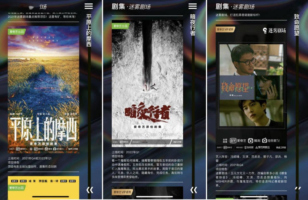 更难以比肩的是内容生产能力。爱奇艺频频推动垂直化剧场模式的努力,印证了国内长视频平台开始从泛内容生态转向垂直化内容管理。2018年,爱奇艺推出“爱青春剧场”与“奇悬疑剧场”,随后在2020年进一步升级为“迷雾剧场”、“恋恋剧场”与“小逗剧场”。