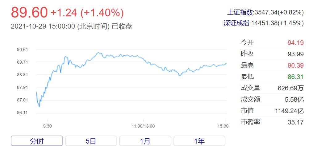 作为大众信赖的老牌企业,口罩的不合规事件让云南白药的口碑直线下降,连牙膏等其他产品的质量也遭到了质疑。除了信誉之外,还有股价也受到了很大的影响,今年年初云南白药的股价一度最高上涨至159.38元,市值一度超过2000亿元,但到2021年10月29日收盘,其股价已经跌落至89.60元。