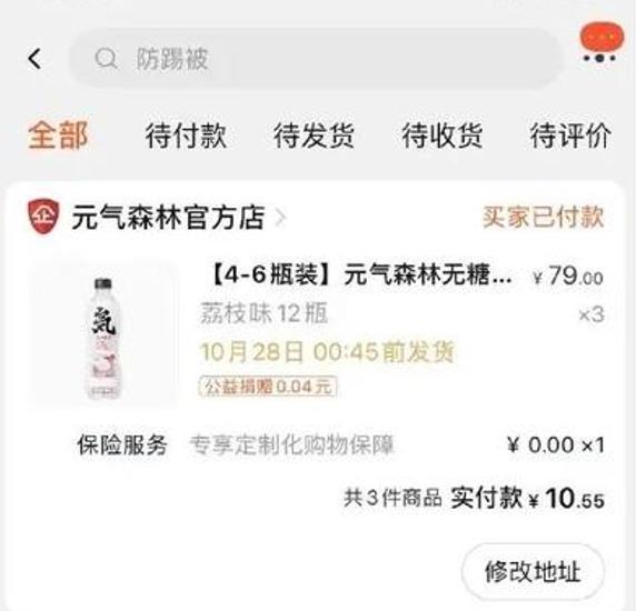 在这次事件中,也有消费者吃到了天上掉的“大馅饼”,有网友曝料,有人买一箱仅花了1分钱,连续下单买了41000箱元气森林标错价格的气泡水,在社交媒体上晒单并称要1300年才能喝完这些气泡水。