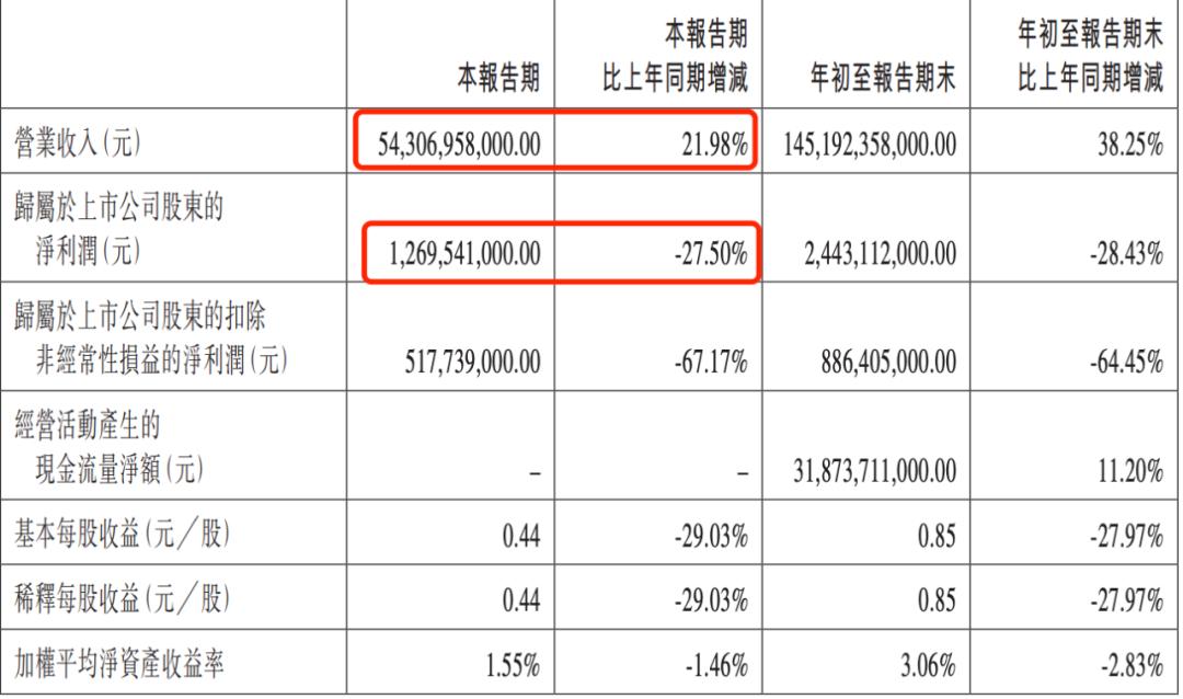 根据财报数据显示,第三季度比亚迪实现营收543.07亿元,同比增加21.98%;实现净利润12.7亿元,同比下降27.5%。可以看出,让市场期待的比亚迪,陷入“增收不增利”的怪圈。