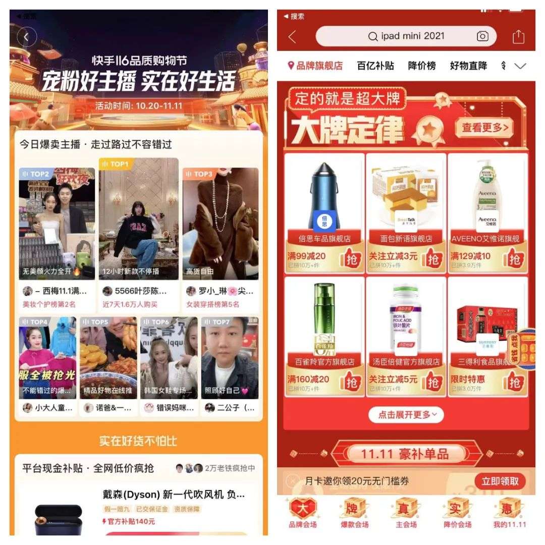 如果说往年双十一大家关注的是“快手一哥”辛巴与薇娅、李佳琦的隔空PK,那么今年快手的风光不再被头部主播遮蔽,而是主打品牌和品质,甚至在双十一之外自造了一个“116品质购物节”。外界往往关注快手下调了今年的GMV目标,却未注意其品牌化转向。双十一期间无疑是一个绝佳的契机,搭乘这波快车有助于提升快手在电商主流消费者心目中的形象,同时提高平台用户的客单价。