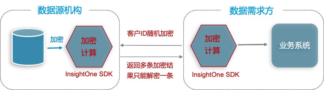 采用匿踪私密查询技术,对查询方的客户身份 ID 进行混淆加密,数据源方返回多条查询结果,但查询方只能解密出目标客户的那一条,数据源方无法确切知道查询方的客户信息,有效避免了查询方的客户身份ID 信息泄漏。