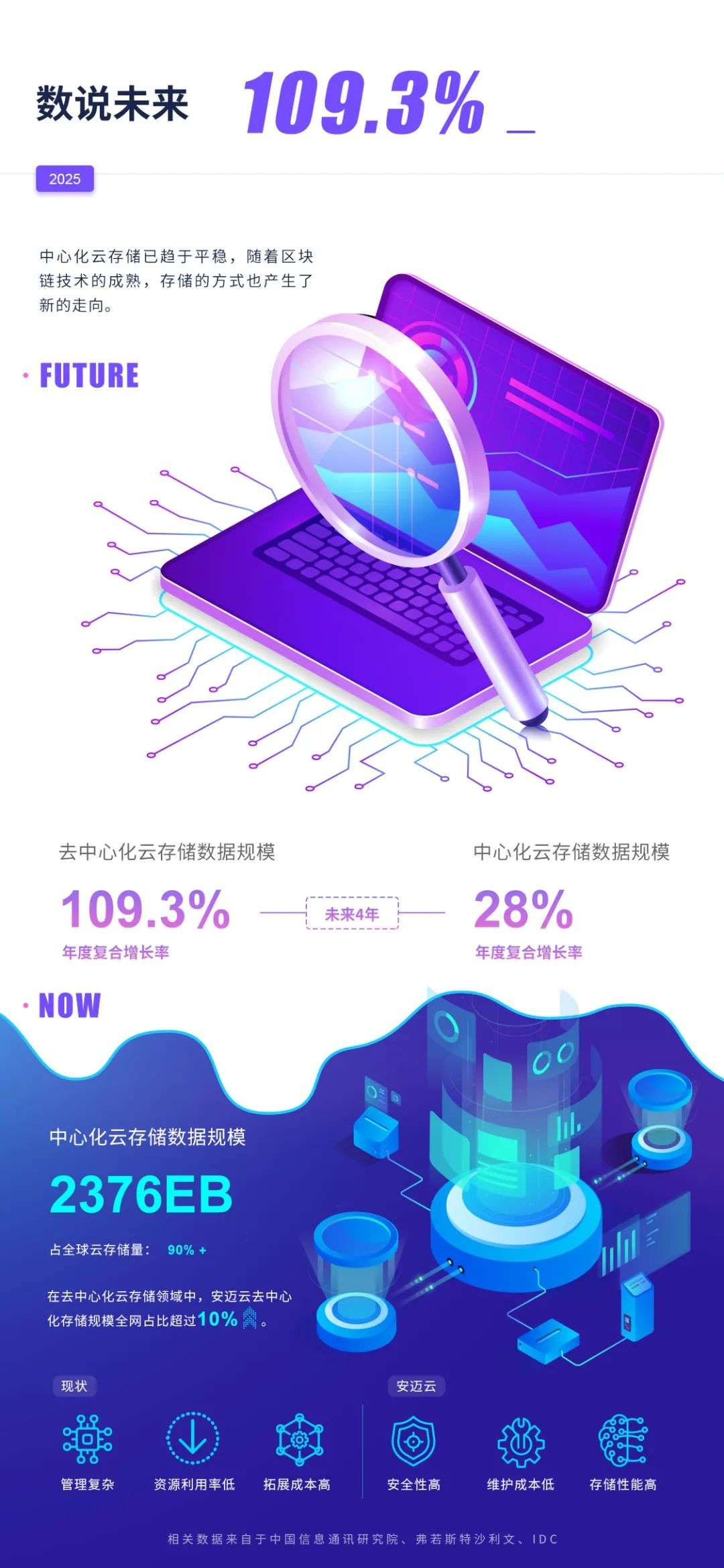 未来,安迈云将继续秉持“研发驱动、合规安全”的理念,专注于分布式存储、区块链、数据加密安全等底层技术的研发和创新,为企业带来高可用、高安全、低成本的去中心化数据存储服务,助力企业数据化转型,推动去中心化存储行业向好向快发展。