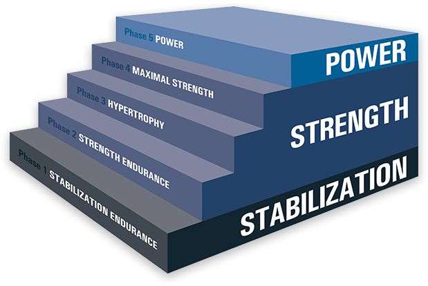 比如,在一般体能训练中,有NASM根据最佳表现训练模型OPT Model提出稳定、力量、爆发的进阶式训练,即从维持脊柱静态、肌肉等长收缩,到脊柱完成负重下屈伸、侧屈、旋转的动态力量训练,再过度至提高动作产力速率的爆发运动。