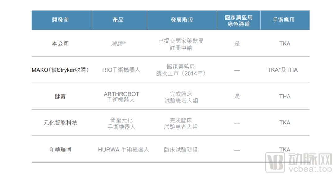 微创医疗机器人和天智航不同,微创开发的骨科手术机器人主要用于关节置换。国内骨科关节手术机器人市场也不乏参与者。