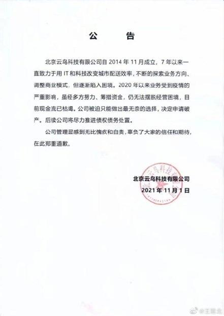 2019年云鸟CEO韩毅被颁发了一个奖项,“新中国70年中国物流民营企业家70人”,彼时他或许还不曾想过云鸟科技有一天会走到破产清算的结局。而他曾说过的一段话,如今看来,颇含讽刺: