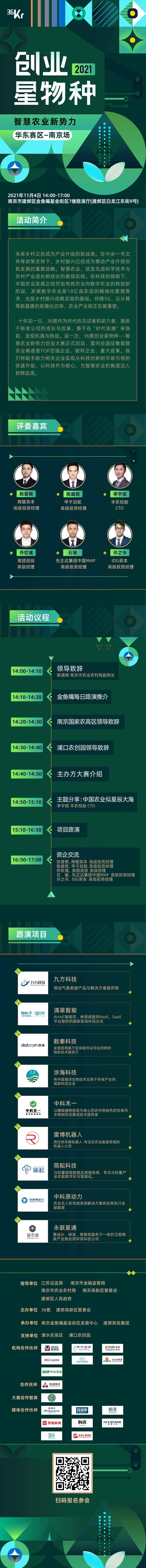 2021年11月4日,2021创业星物种—智慧农业新势力华东赛区南京场将在南京金鱼嘴基金街区举办,作为智慧农业大赛的第一站,本场比赛聚焦智慧农业的技术解决方案,涉及农业大数据、生物技术、物联网等赛道的10个项目将在现场进行路演,创投机构、创业企业、区域政府等大咖评委将现场点评,并就热门话题进行讨论。