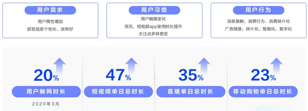 用户思维方式变得短频快,信息获取讲求效率、快捷;媒介触点变得分散,优质内容更容易赢得用户的注意力;消费行为变得日常随性,发生购买行为更多出于即时的兴趣,而非紧急的需要。