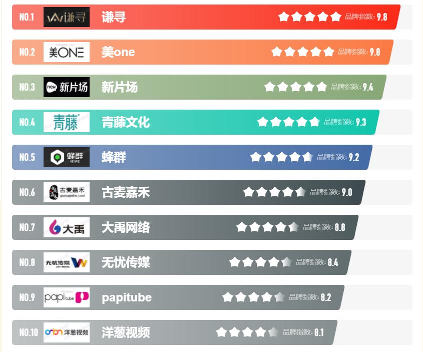 来源:网络《2021年MCN机构十大品牌榜中榜》
