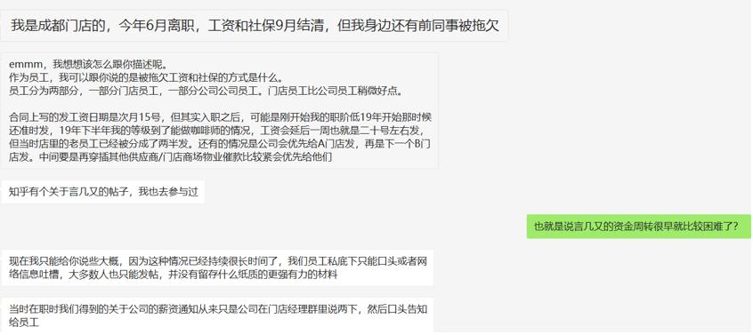 而且公司关于薪资的通知从来只是在门店经理群里说下,然后口头告知给员工们,这样员工并无纸质等这样强有力的材料,只能私底下口头或网络吐槽。