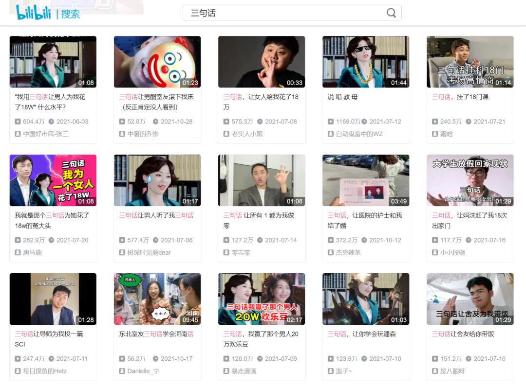 当当事人选择参与到节目中来,就意味他们需要让渡自身部分隐私,于是我们得以在节目中看到夫妻反目、父子大打出手等家庭隐私问题,激烈的言辞、戏剧性的叙事都使得情感类节目展现出日常生活中不足为外人道的狗血戏码。而情感类短视频则往往会选取十分具有噱头的标题以吸引受众,如文首提到的视频《三句话让男人为我花了18万》。