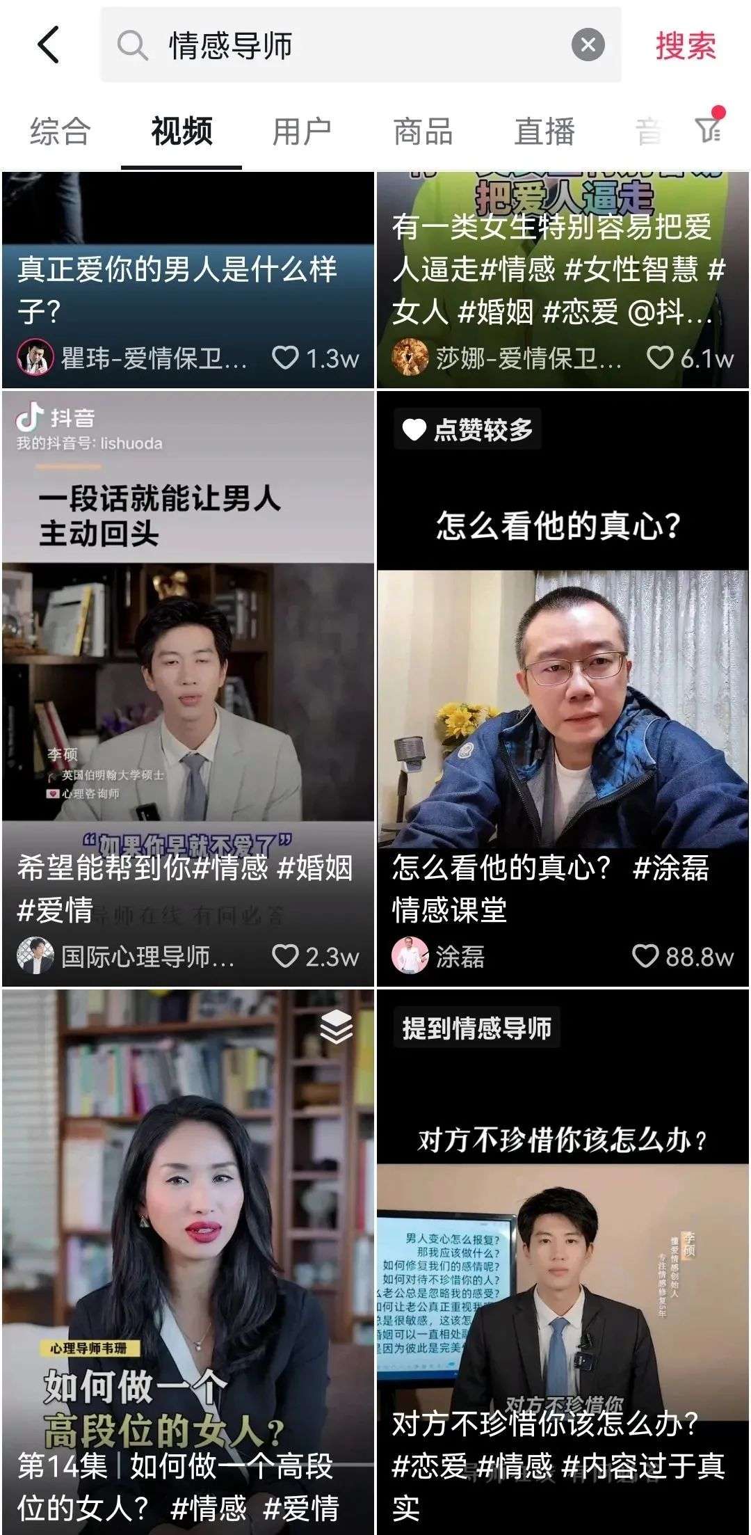 情感指导类短视频在平台上很受欢迎。图片来源:抖音