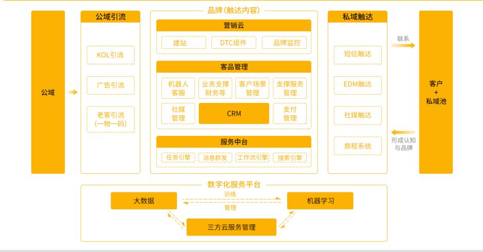 首先,私域基建是指基于私域池引流的SaaS产品+服务,辅以海外社媒和海外KOL板块,为出海企业构建属于其自身的品牌私域运营平台。