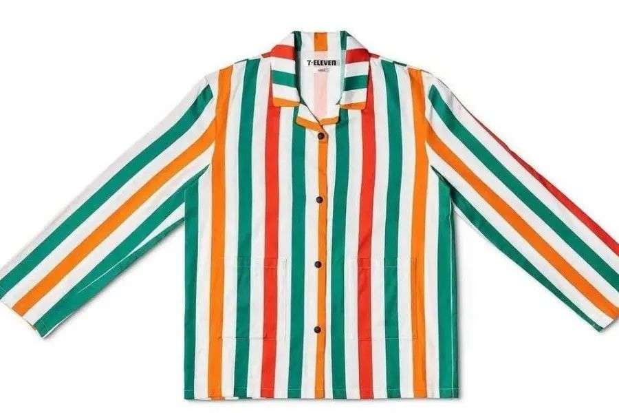 比如,这套睡衣大家看着是不是有点眼熟?睡衣上的条格,就是711便利店的门头色。日常我们路过711便利店时,早已经对它的三色条纹“免疫”。