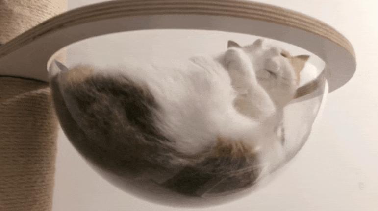像往常一样,到了逗猫时间,他把镜头对准了躺在猫架里的帮帮。