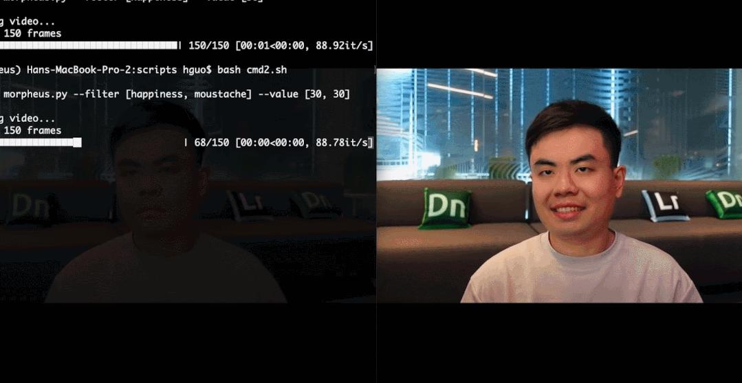 Morpheus能够对视频做出相似的调整,并且还添加了一些新的滤镜,例如可以为视频中的人物改变胡须形状、添加眼镜等。