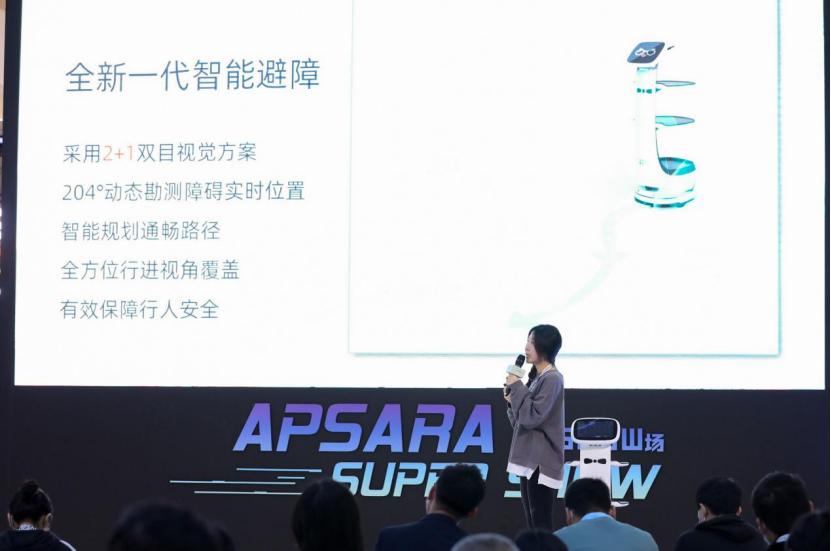 基于中式快时尚、休闲餐饮场景下的小通道痛点,擎朗于近日的云栖大会现场发布了 送餐机器人飞鱼。 该机型具备厘米级别的定位精度,在50cm的狭窄过道中都能顺畅通行,同时,它所采用的全新一代智能避障系统,内置的2+1双目视觉方案,能够实时勘测出204°超大范围,在检测到前方有障碍时,能够及时调整路径,进一步加强自身灵活性,为中小场景下智能送餐提供了优质的解决方案。
