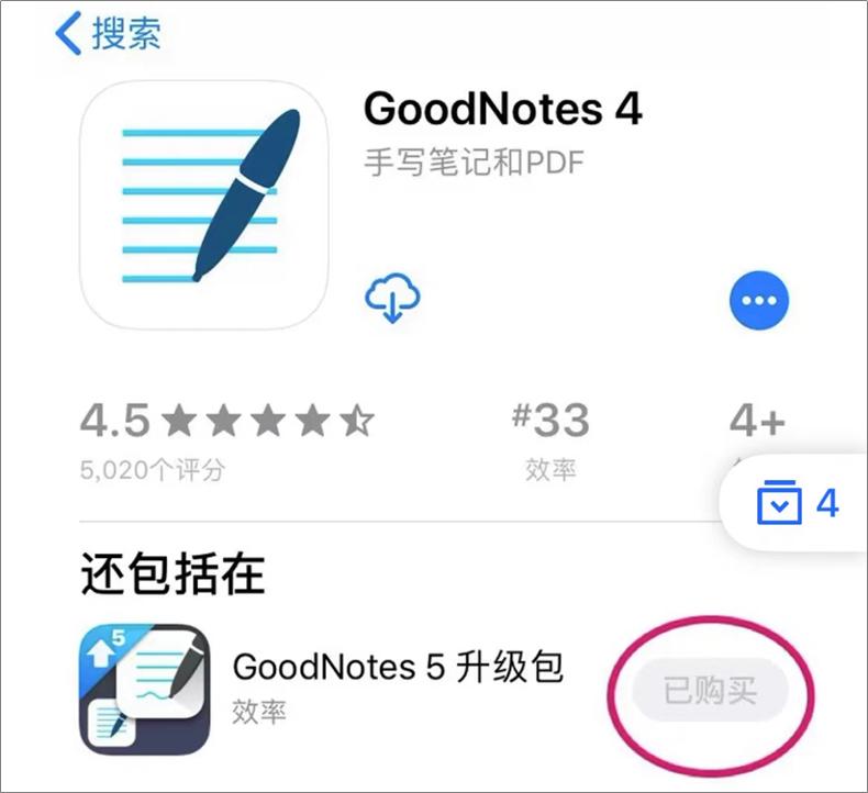 GoodNotes 4 在升级到第五代时,针对自己的老用户推出了免费的升级包,已经购买过老版本的用户可以免费一键升级,享受更多服务,足足拉了一波好感。