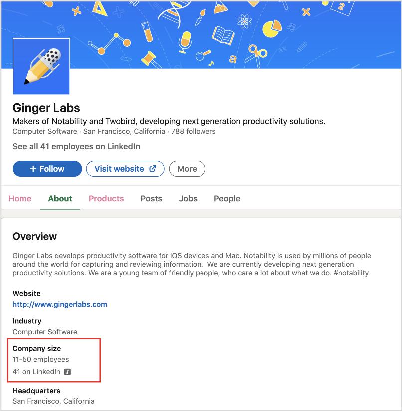 经过查证,运营社发现,在这方面 Notability 所言非虚 ——产品所在公司Ginger Lab 在 LinkedIn 上显示的是 11-50 人,目前只有 41 位员工,的确是“小而美”。