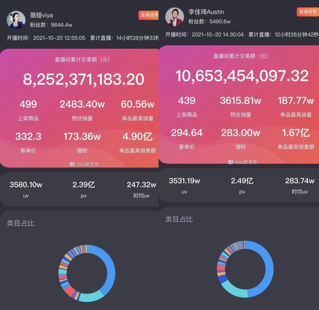 刚刚过去不久,两人预售相加近200亿的成绩,引发了业内的热议。可以预测,今年双十一两人带货总额将进一步刷新纪录。