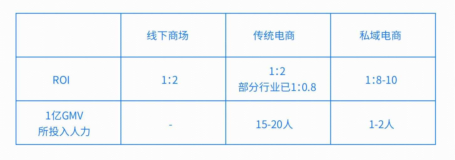 见实在《私域电商崛起:2021见实私域流量白皮书》中也表达了类似的观点,“如果由同一商家供货,实现同样的营收,以天猫平台和私域电商需要完成的工作来对比。天猫需要系统搭建、营销团队、客服团队,平均需要配备10人左右。而在私域“直播+小B”即可实现,3人左右即可完成。”